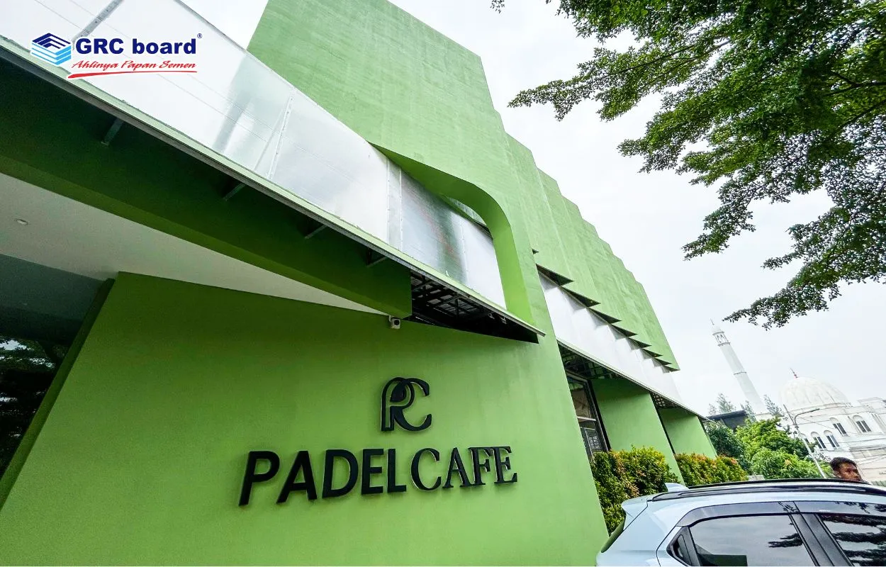 A recent padel court project stands out for its successful application of GRC Superpanel cement boards from GRC board. The material is used as a facade panel in a sophisticated geometric arrangement, dominated by an iconic green color. These panels are installed vertically with high precision, while the vibrant green hue reinforces the sport's visual identity and energy.