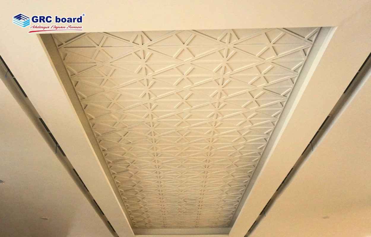 b. For a more stylish finish, consider decorative GRC board products like GRC Deco Line or GRC Mahoni Eco Line, which offer textures or wood grain motifs to add a sophisticated accent to the ceiling.